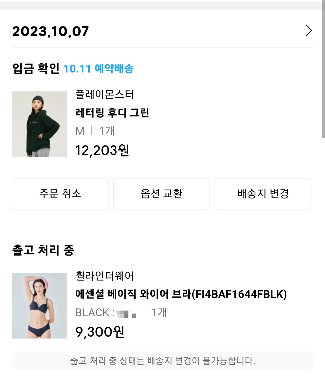11500원에 속옷과 후드티 구입완료~