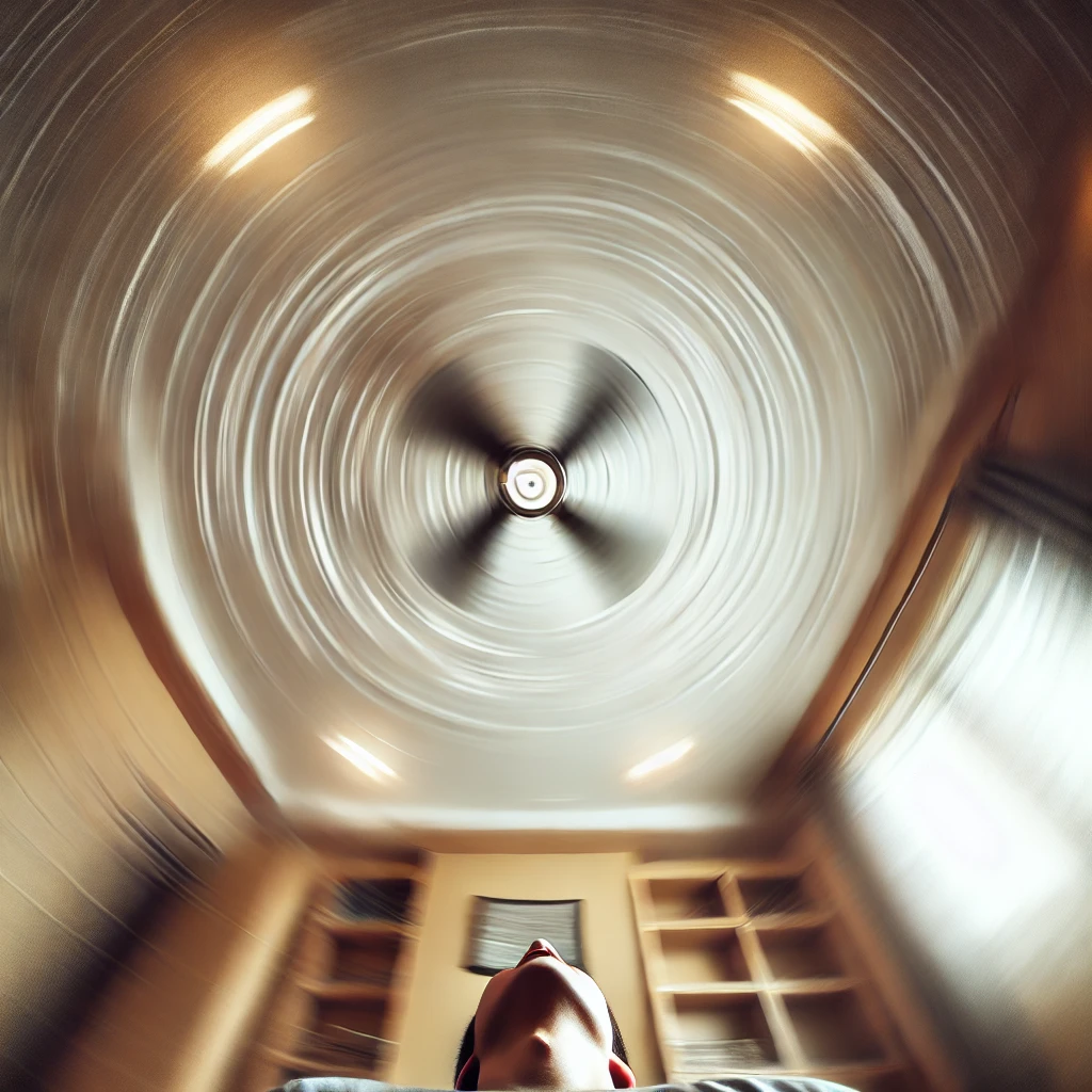 (천장이 빙빙도는 듯한 느낌에 어지럼증 / 가만히 누워있으면 괜찮아지고 자세변경을 하면 다시 어지럼증이 발생하는 어지럼증)