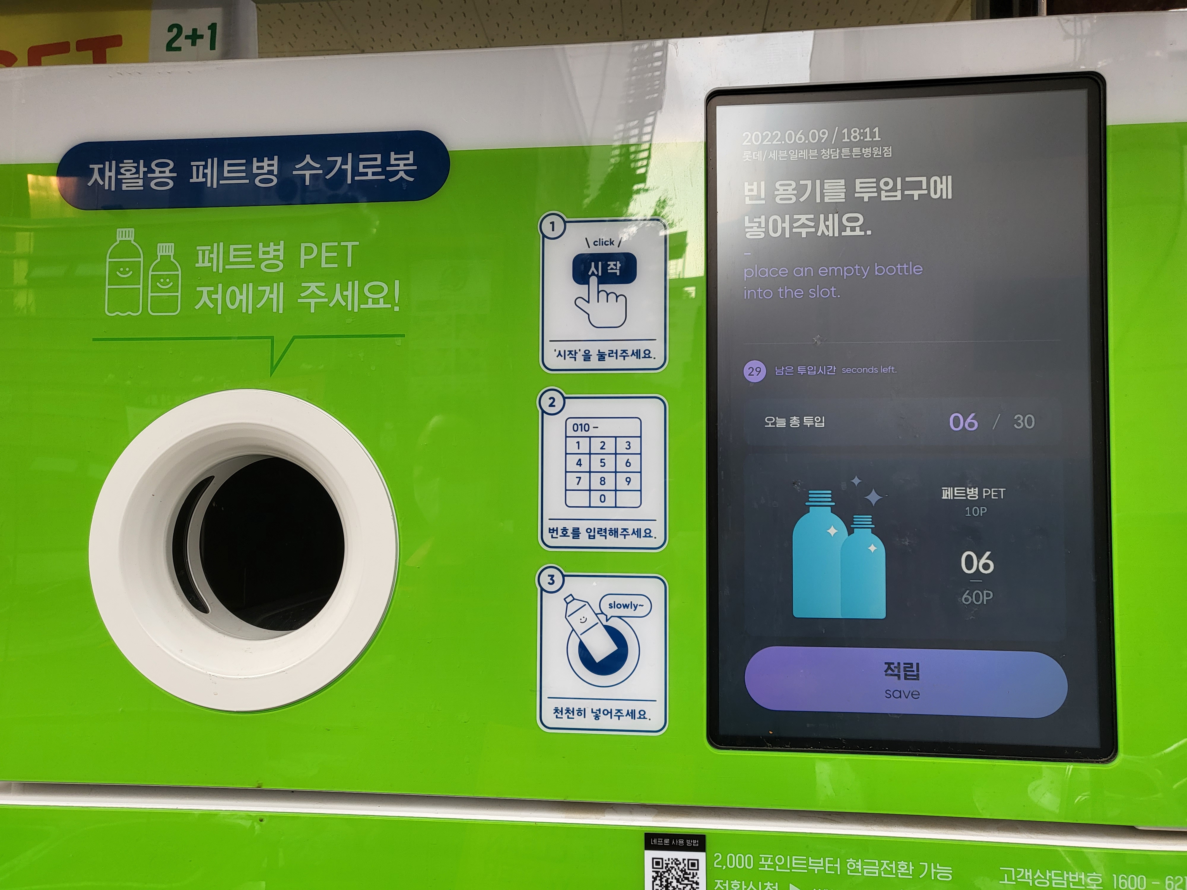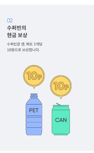 수퍼빈은 투명페트병, 캔,  배달음식뚜껑을 반납하면 돈으로 환급해주는 기계입니다